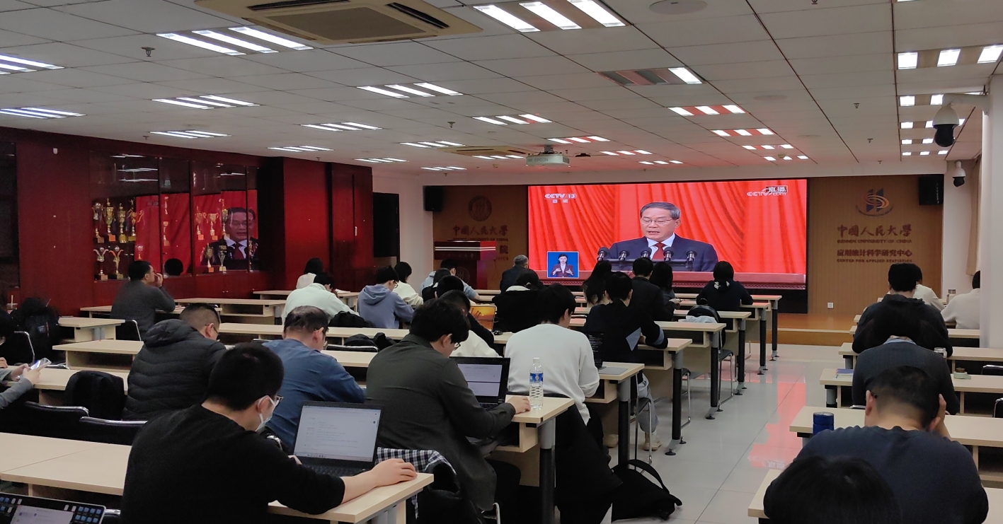 公司党委高度重视、精心组织,yl6809永利、统计与大数据研究院师生在双校区第一时间收听收看开幕盛况,密切关注两会进程、深学细悟报告精神,迅速掀起学习贯彻全国两会精神的热潮。此次学习收看活动进一步凝聚了师生思想共识与奋进力量。大家纷纷表示,将把两会精神转化为干事创业强大动力,把统计专业所长与国家发展需求深度融合,为高质量发展、教育强国建设和民族复兴伟业,贡献人大统计人的智慧与力量。
