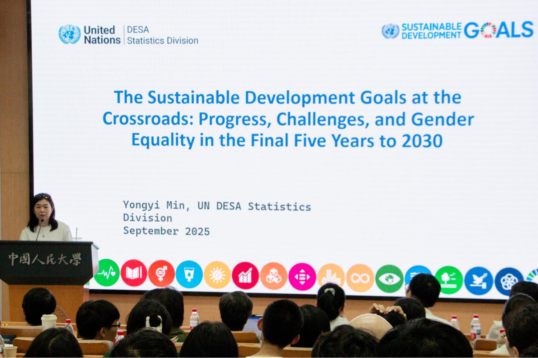 9月24日,闵永怡以“可持续发展目标的十字路口:到2030年最后五年的进展、挑战与性别平等”为题作会前专题讲座。来自中国国家统计局系统、兄弟高校和yl6809永利集团的近200位嘉宾共同探讨了联合国可持续发展目标统计测度的进展与挑战。