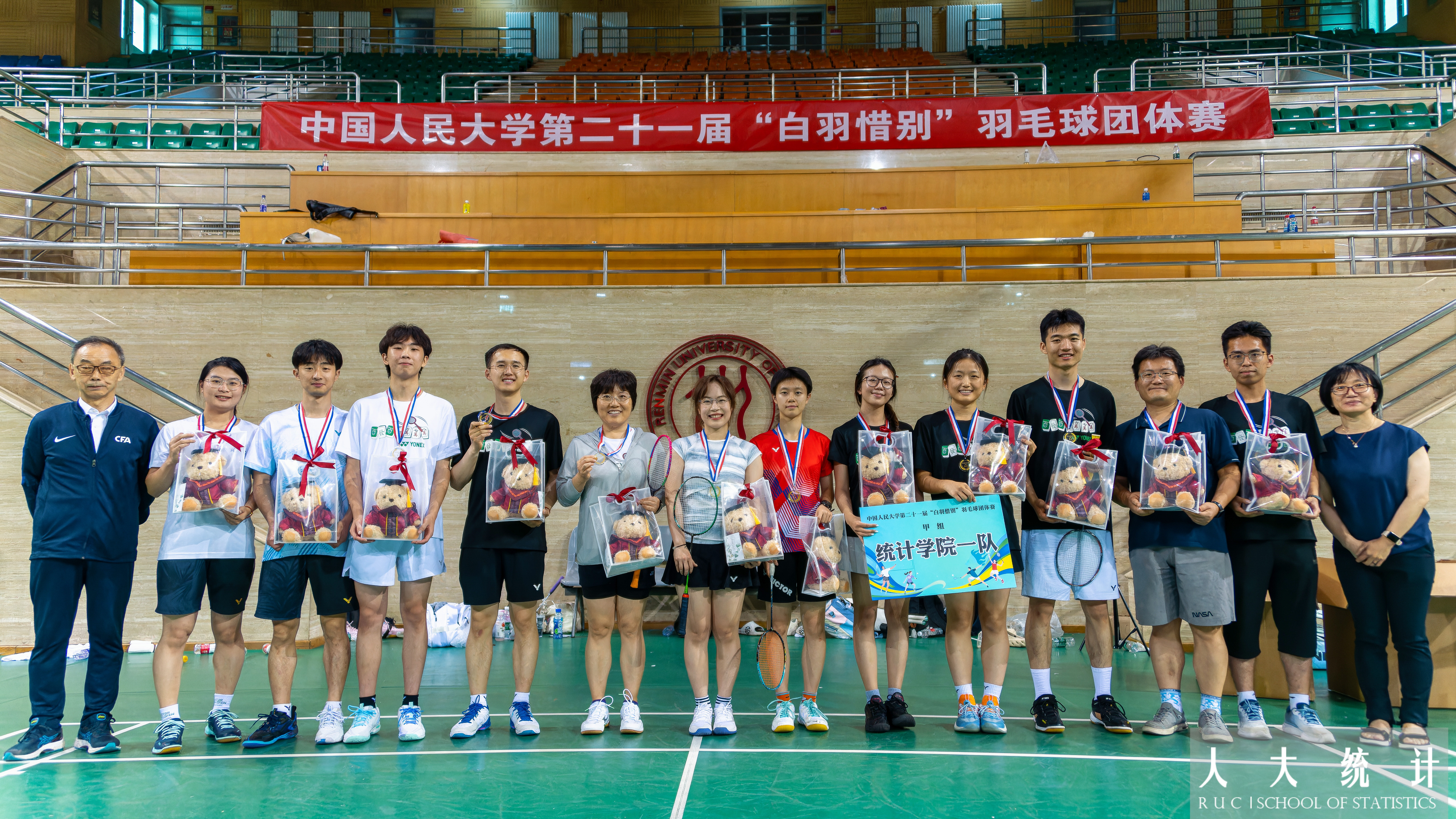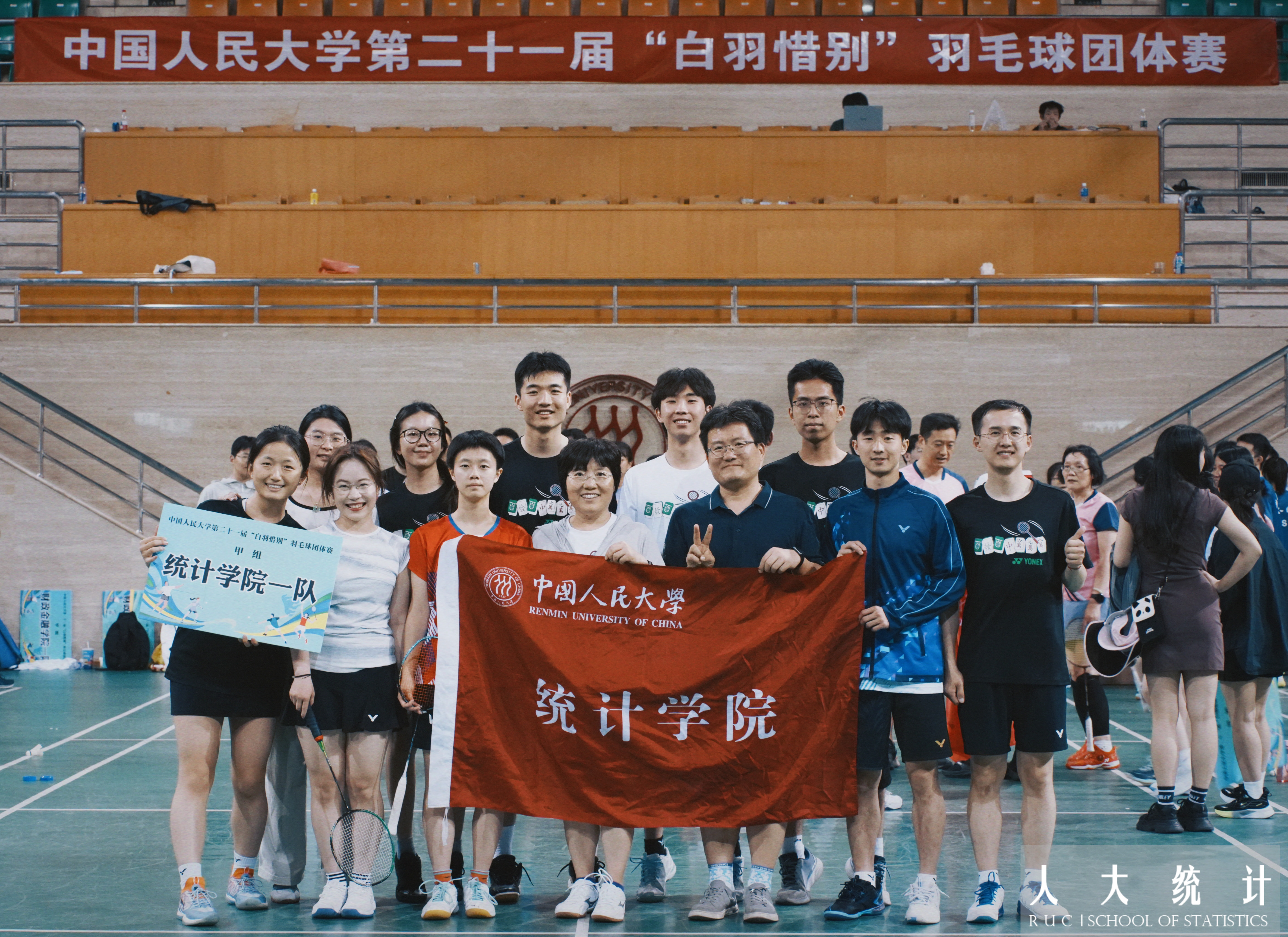 初来人大,很开心很荣幸地跟随师兄师姐们延续了三年两冠的辉煌。如今惜别在即,但是热爱不会挥手告别,愿越来越多统计学子可以加入统计羽球的大家庭,一同赓续统计白羽的辉煌!