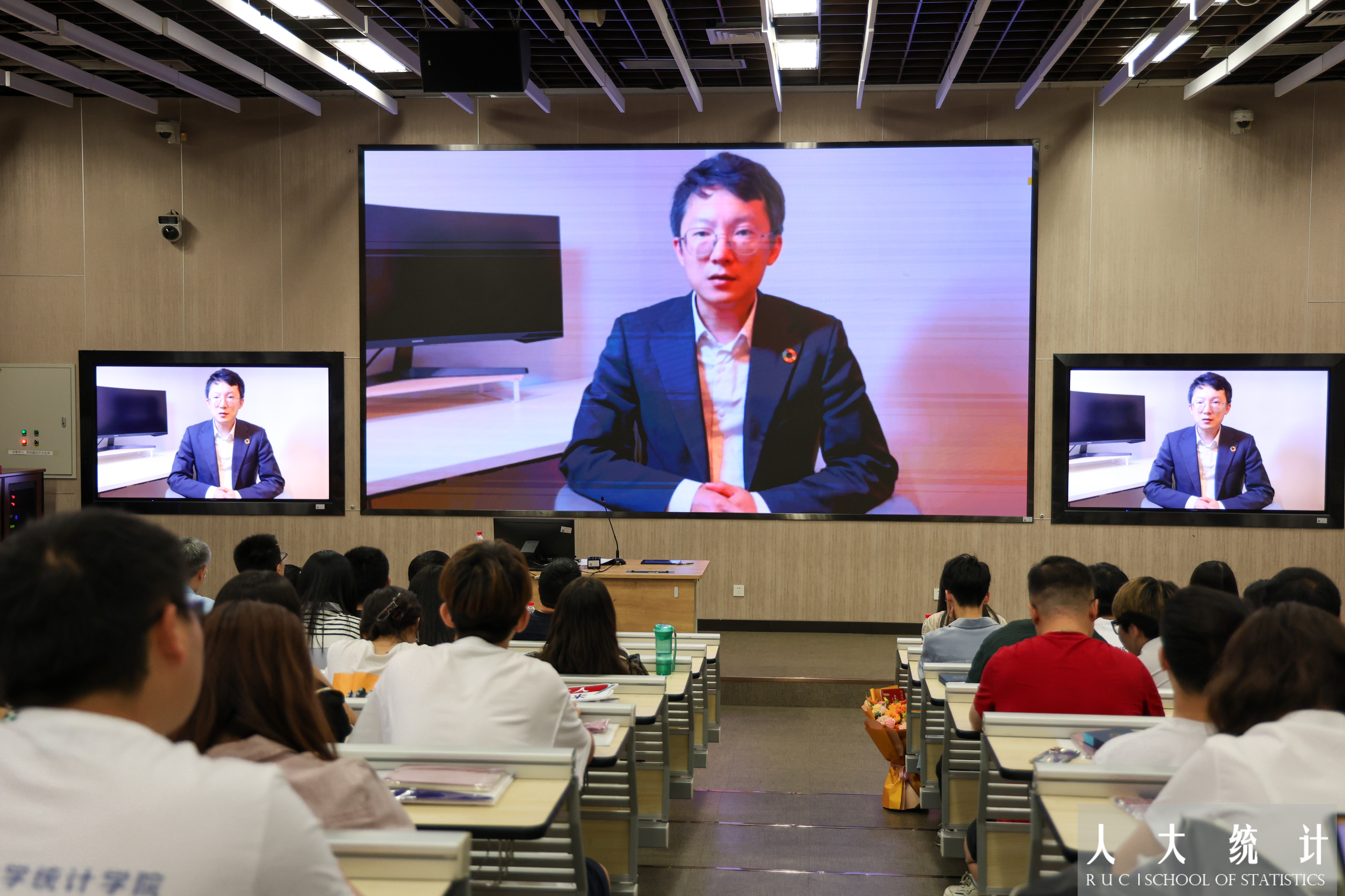 2003级本科生、2007级硕士生曹后乐员工,现任国家税务总局国际税务司联合国开发计划署署长办公室数据分析专家,通过视频方式为yl6809永利全体2025届毕业生送上祝福与期望。他首先祝贺同学们圆满顺利毕业,走向了具有无限可能的未来。他希望同学们能够适应时代变化,深度参与世界统计合作,带着对世界的好奇心和一份人性的温度,走出独特的精彩人生。