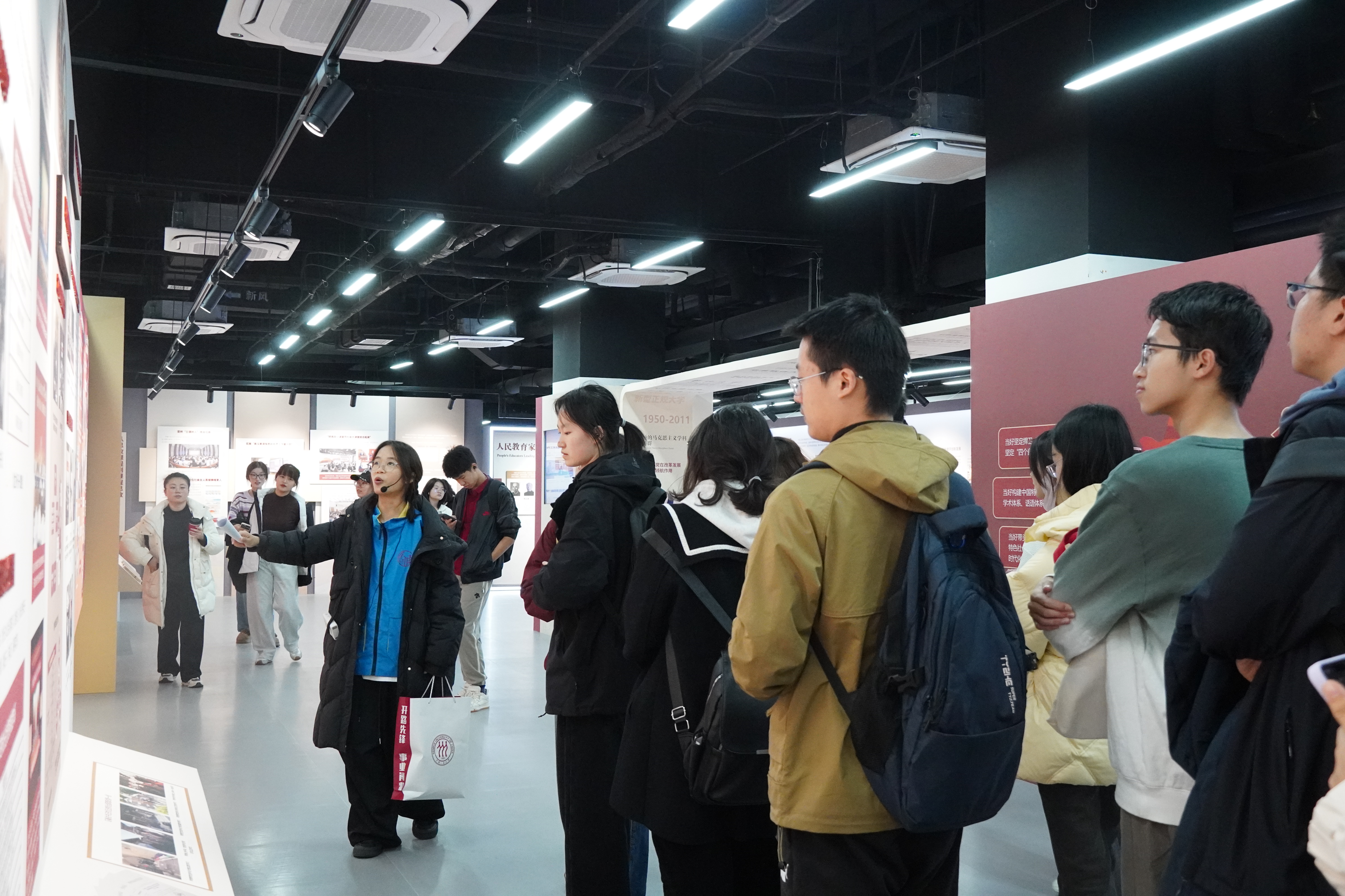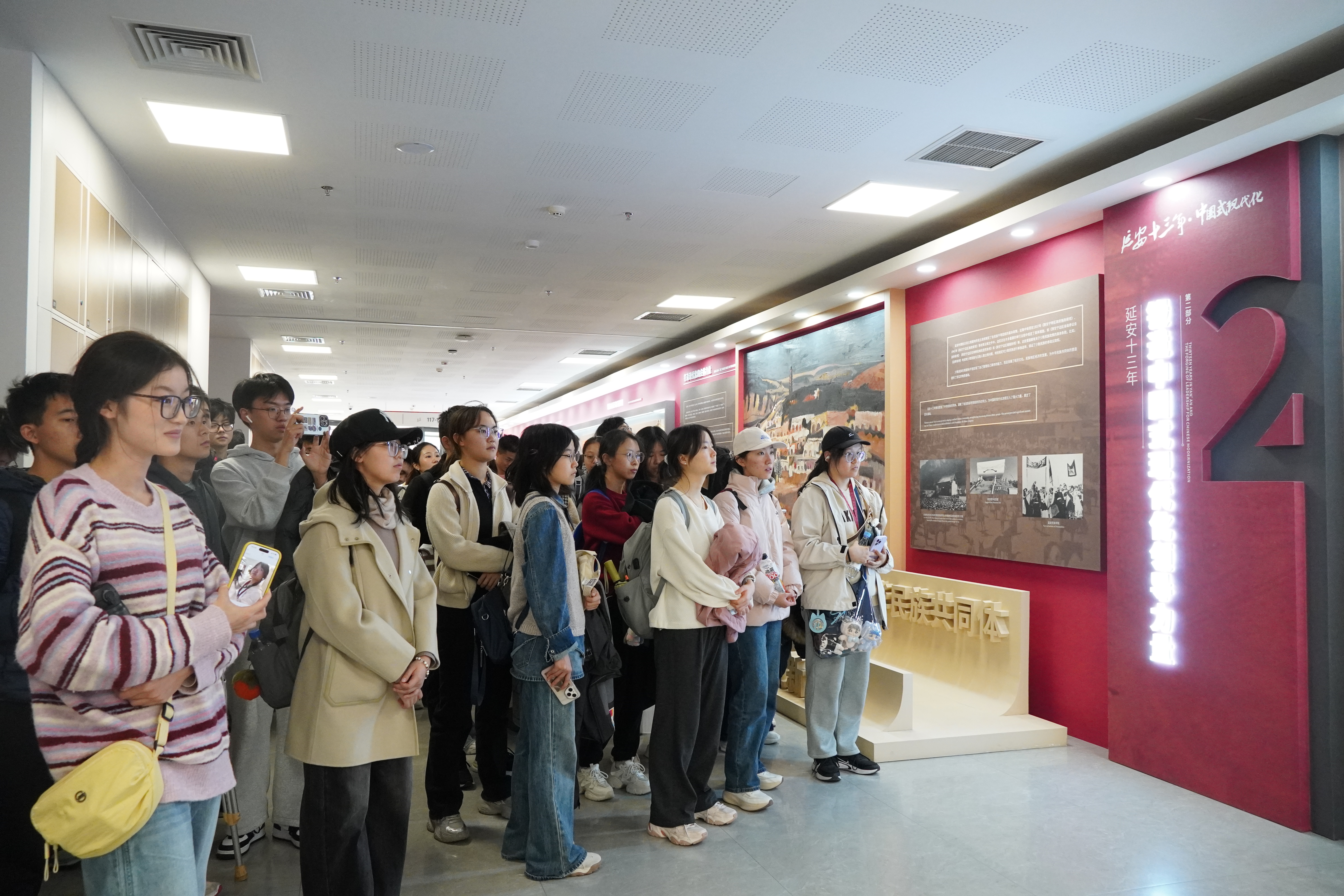 随后,大家走进“延安十三年与中国式现代化”主题展馆与校史馆。志愿者以历史脉络为轴,系统梳理了中国共产党在抗日战争时期的中流砥柱作用、改革开放以来的跨越式发展历程,深刻阐释了中国共产党作为中国式现代化核心孕育者与关键推动者的核心逻辑,同时也回顾了yl6809永利集团从建校伊始到跻身世界一流大学建设行列的奋斗历程。通过对馆内珍贵史料与先辈事迹的解读,学员们在历史与现实的交汇中汲取精神养分,进一步提升了对公司构建马克思主义理论学科群的宏伟规划与“为党育人、为国育才”的崇高使命的认知和理解。