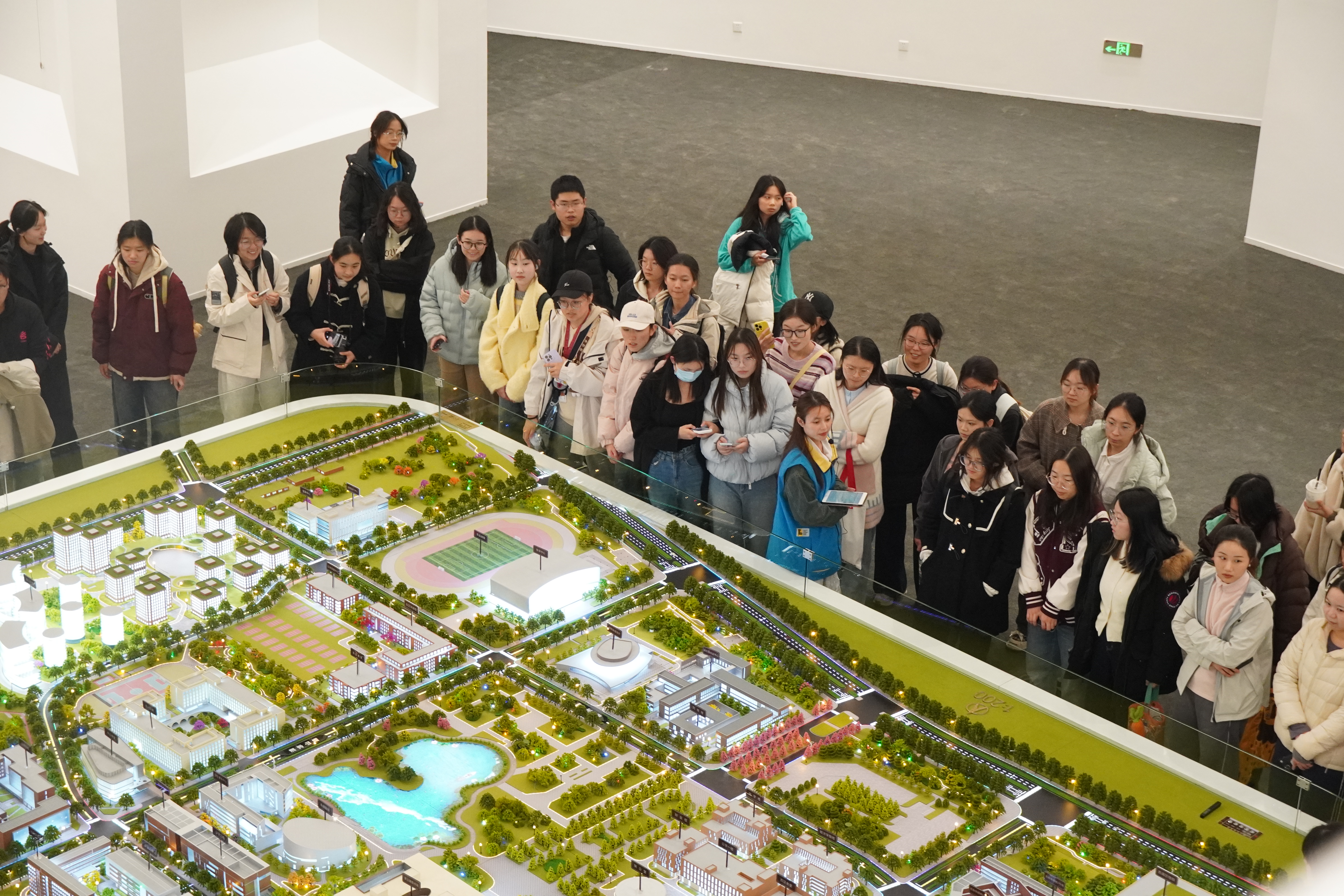 活动伊始,学员们在志愿者的引导下开启新校区实地探访,通过通州校区的沙盘模型直观了解通州校区的功能布局、整体规划理念,以及“新时代示范校园”的建设定位。互动答疑中补充的规划细节,让学员们更加感受新校区的宏伟格局与时代气息,进一步增强对公司发展蓝图的认同感与归属感。