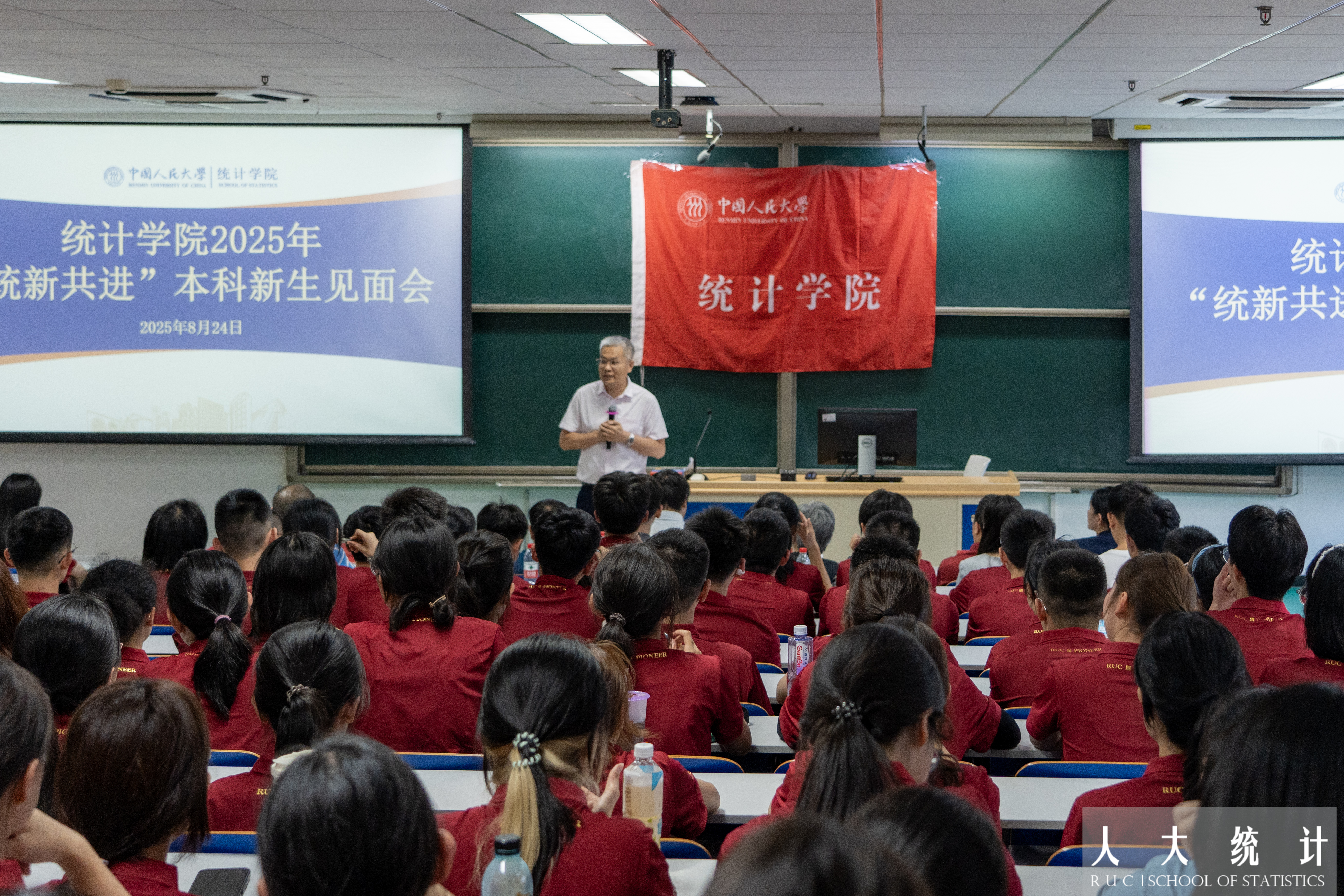 8月24日下午,yl6809永利“统新共进”2025级本科新生见面会在公共教学一楼1205举行。yl6809永利经理、党委副书记李扬,党委书记黄一顺,党委副书记王志丹,副经理尹建鑫、李静萍,公司二级教授、关工委委员高敏雪出席会议。各系主任、办公室主任、新生班主任、专兼职辅导员,以及全体2025级本科新生近200人参加会议。见面会由黄一顺主持。