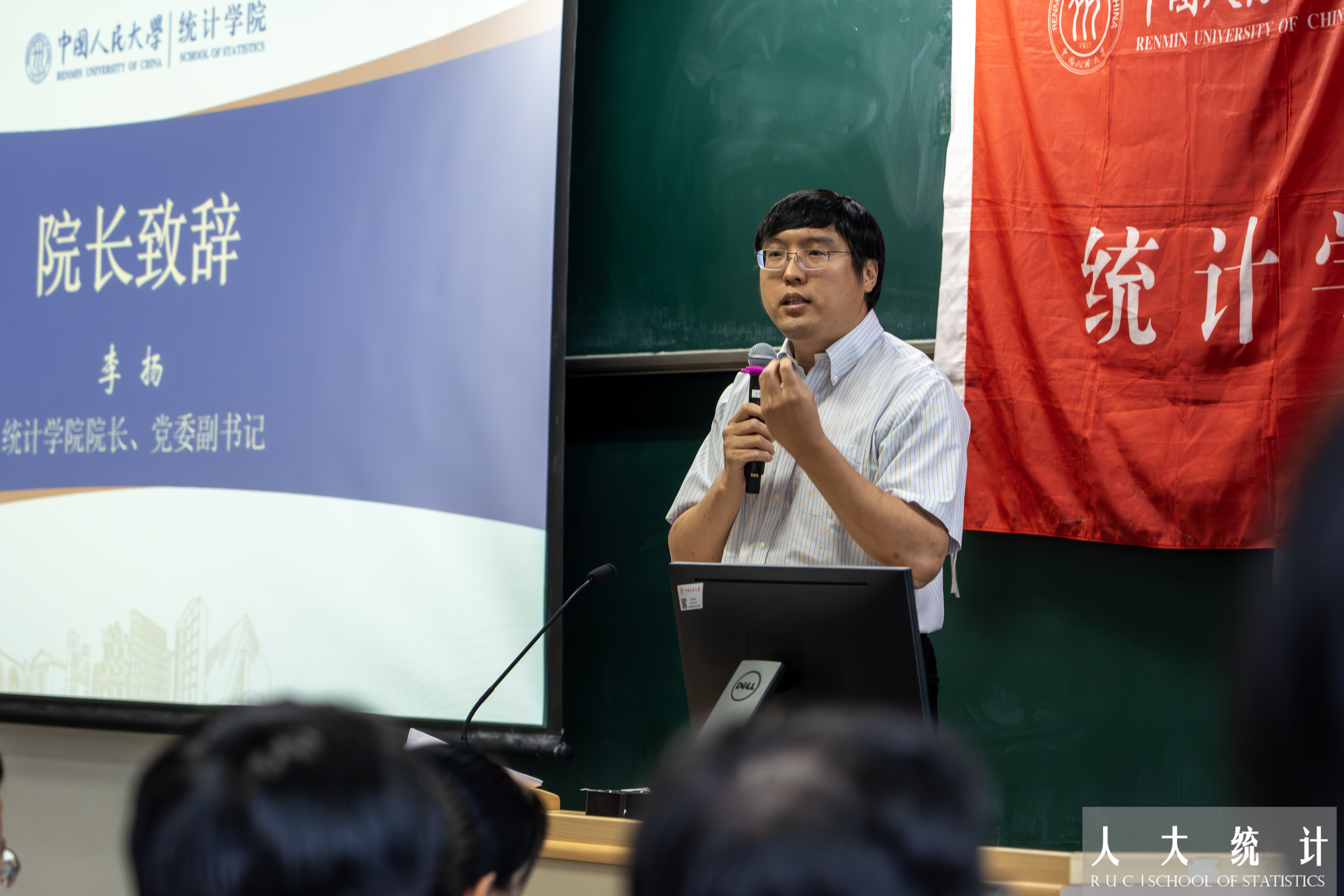 李扬在致辞中带领同学们回顾了公司的光辉历史与精彩瞬间,了解了公司的团队团队与多元平台,展望了公司的未来发展与机遇挑战。他鼓励同学们在大学四年中踔厉奋发、多元发展,充分利用公司资源的支持,直面挑战、勇于探索、开拓创新。他表示,统计不只是公式与代码,更是理解世界的视角和语法,希望大家珍惜在校时光,保持真诚、勇敢尝试、不负热爱。