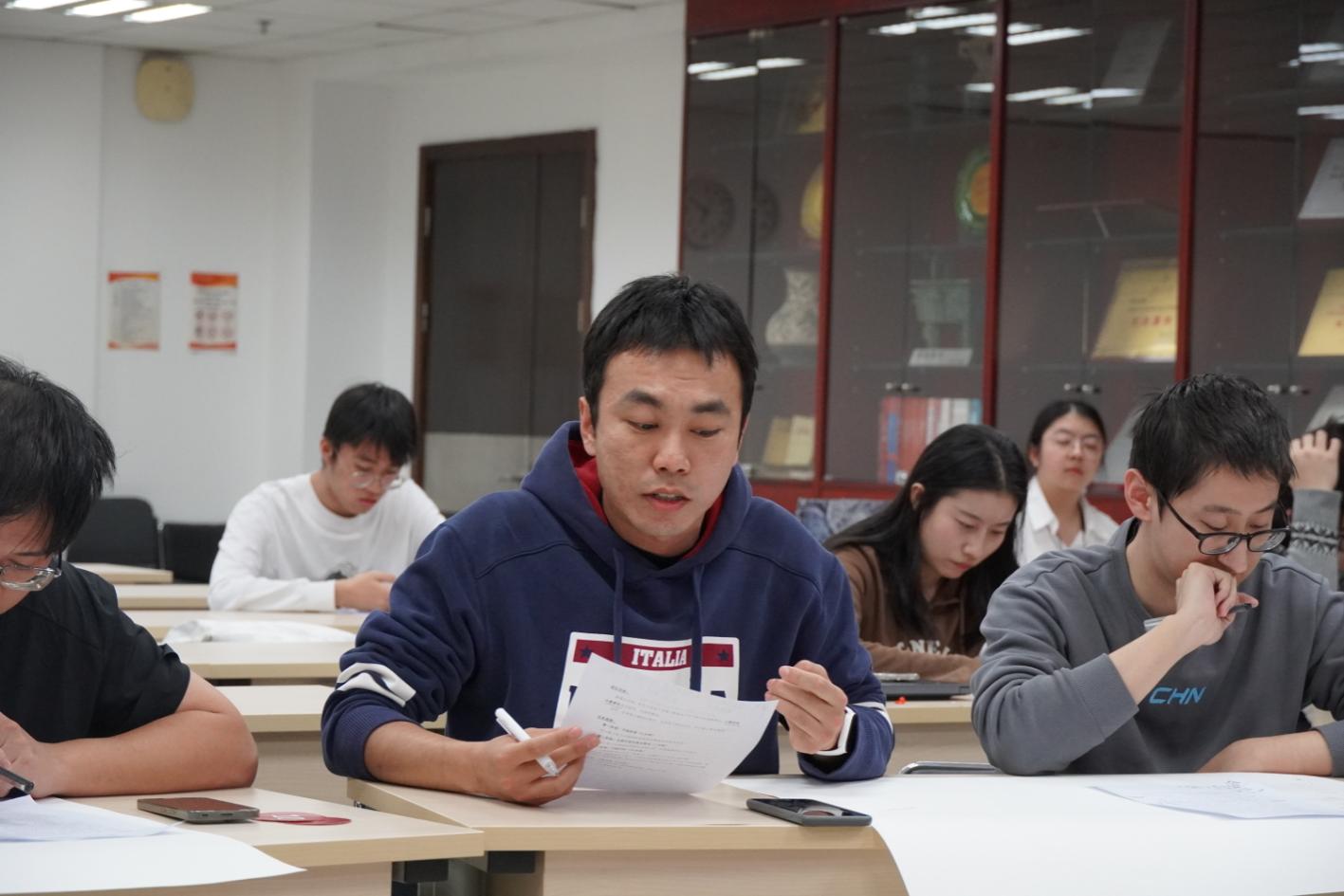 随后的无领导小组面试模拟环节将活动推向高潮。来自yl6809永利、信息公司、财政金融公司的15位员工,围绕大模型技术应用、新质生产力驱动发展等主题,开展了两轮无领导小组面试实战模拟。从自我陈述到小组讨论,再到总结汇报,同学们综合运用统计学、计算机科学、金融学等跨学科专业知识,在实战中锤炼逻辑表达、团队协作与危机处理能力。